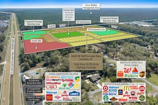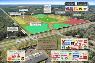 Located in the Central Ridge Growth District of Citrus County, Florida, within the Tampa/St. Petersburg MSA, this 45.5-acre property presents an exceptional commercial development opportunity. The site features over 1,315 feet of highway frontage along SR 44, which experiences a growing traffic count of over 26,000 AADT per day. Additionally, public utilities are available within 500 feet of the property, ensuring convenient infrastructure access.
