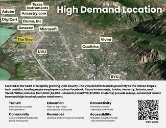 Discover a rare investment opportunity with a modern 18-unit apartment community offering exceptional stability, strong tenant appeal, and a full suite of resort-style amenities. Built in 2017, this three-story property sits in the heart of Vineyard-one of Utah County's fastest-growing markets-just steps from the Vineyard UTA FrontRunner station and minutes from I-15, UVU, BYU, retail, restaurants, and entertainment. The property features a mix of spacious 1–3 bedroom residences, each designed for durability and tenant appeal with in-unit laundry, granite counters, stainless steel appliances, and private patios. Residents love the resort-style lifestyle: a full clubhouse, pool, 18-person hot tub, fitness center, sports courts, playground, BBQ stations, pet parks, and EV charging. 90.5% occupancy in 2025 with a consistent four-year average NOI of $231,465, this asset offers immediate stability and long-term upside in one of Utah County's fastest-expanding submarkets. A standout addition to any investment portfolio. Open to selling additional building for a package deal.
