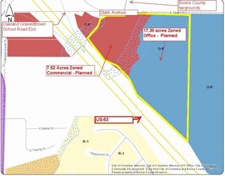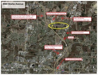 Development tract REZONED to M-C - Corridor Commercial. Suitable for most retail, office uses. Trunk sewer through the property. Water main on property. Excellent visibility from US-63. Fair Grounds across E Starke Ave. Industrial Expansion nearby.
