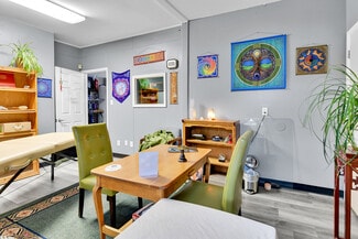 Charming Applewood retail asset with open showroom, new vinyl floor finish, track lighting, natural daylight, and boutique offices. Includes a built-in kitchenette/bar area plus secure storage. Strategically located within the vibrant Applewood Village retail corridor and anchored by long-standing specialty tenants. Ideal for a boutique retailer, studio, wellness or specialty service operator seeking high exposure and a community-oriented location. The current tenant is For Heaven Sake Metaphysical Store. They would be open to subleasing the entire floor or splitting the space in half to accommodate a user that needs less space.