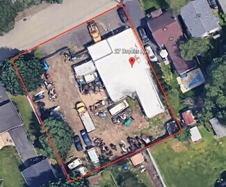 2664 SF Industrial Building. Formerly operated as a auto repair and auto body shop, this property is perfect for a contractor searching for shop space or indoor parking of vehicles and equipment. The shop can fit five vehicles. Small office space. Windows have been replaced and the bathroom renovated. Cinderblock construction with 3-10' drive in doors. Clear ceiling height is 12 ft. Oil heat in the shop, electric in the office. The site is .33 acres which allows for contractor yard space for equipment of vehicles. The lot also can be redeveloped into residential homes. The parcel is 3x the size of neighboring residential properties.