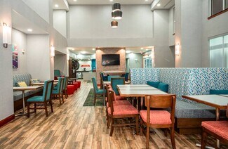Hampton Inn and Suites offers many amenities for guests to enjoy. There is an indoor pool, a fitness center, and a business center. There are also 2 meeting rooms available with 1,749 SF of space available. Additional complimentary amenities include a free breakfast, coffee and tea in the lobby, free WIFI, and free parking. For dining, there are 24 restaurants within under a mile of the hotel. Each guestrooms has a microwave, mini refrigerator, coffee maker, and flat screen TV with premium cable channels included.