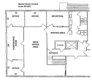 NEW LEASE RATE! Boutique office space for lease in the Market Street Central office complex, featuring a beautiful campus in the Forest Hills area, just on the outskirts of downtown Wilmington.  This end unit space is suitable for a variety of small office user types.  The suite offers a primarily open floor plan with exterior windows on 3 sides.  It has one private office, niched out areas for workstations, a spacious kitchenette/ breakroom, a bathroom, and a storage/ IT closet.   See the floorplan sketch to envision the many layout possibilities.  Two exterior doors also contribute to the appeal of this property.  There is a covered front entrance, plus a side door that opens to a single parking space for convenient loading (the complex has ample parking, by the way).  This unit overlooks beautiful courtyards; great spots to take a break, or even work in the fresh air of Wilmington's frequent perfect weather.   YMCA members, how convenient to fit a workout into a busy schedule... its directly across the street.  This is a must see for anyone looking for a highly versatile office space in the area.