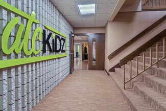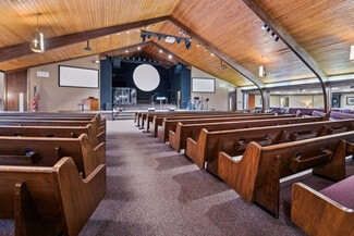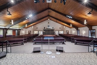 This spacious and versatile commercial property has approximately 17,600 Sq Ft on the main level with approximately 8,540 Sq Ft of additional finished space on the lower level. The main level features a spacious foyer area bordered by two wings, one with multiple classrooms, the other with private offices. Each wing includes dual restrooms and separate exits. The foyer area extends to the sanctuary and features one of 3 sets of stairs leading to the lower level. The fully finished lower level offers a large open room along with a full kitchen, 4 large classrooms, and additional restrooms. The parking lot has 106 spaces, has been well maintained and has two storage sheds.
