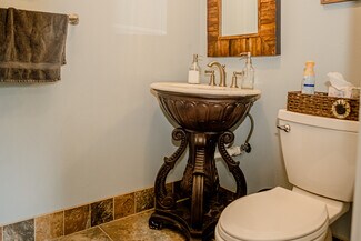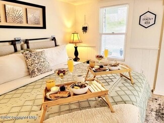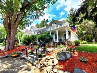 Former Inn with two additional cottages on 3.6 acres in the commercial//hotel/resort district of Barrett Township has a variety of commercial uses, including hospitality, professional services or medical office, group home. The main building is a historic manor home with approximately 10,000 square feet, for years called The Pump House Inn. 10 bedrooms (4 with bathroom suites) on the second and third floor, creates an ideal setting for those wanting peace and seclusions. Adding to the utility are two additional living quarters, each with their own private entrances and kitchens—ideal in-laws suites, guest houses for staff, small groups or even caretaker residences. The possibilities are endless: create a true compound, possible wellness retreat, medical services building or a getaway resort. 16 Bedrooms, 13 bathrooms in total across the three buildings. Barrett Township also allows Short-term Rentals in all zoning districts, this property could be operated as a STR, vacation rental for AirBnB, continue to operate as an inn or convert to one of the many other approved uses.