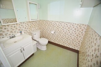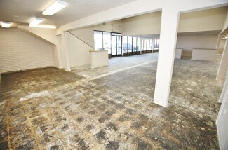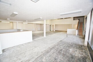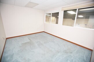 The property offers a large open floor plan with high ceilings, multiple private offices, and is fully finished except for flooring, allowing tenants to customize the space to their needs. The building is equipped with HVAC, ADA-compliant restrooms, and a loading dock, making it suitable for a variety of commercial uses.