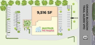 9,516 SF available for lease. Adjacent to Mayfair Pet Hospital. Prime monument signage available on OBT. 69 total parking spaces, 42 existing + 27 additional with proposed expansion (3.7/1,000 SF parking ratio). Convenient access to Florida’s Turnpike.