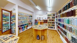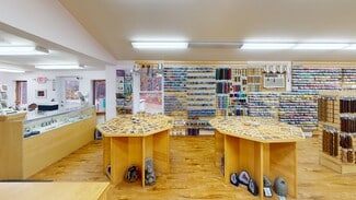The ±3,100 SF free-standing building features a flexible layout with retail and workshop areas, a garage bay and roll-up door and dedicated workspace plus second-floor office and storage space ideal for operations, administration, or creative use. Currently operating as a specialty retail business selling gemstones, beads, and jewelry-making supplies, the property is well-suited for a variety of owner-operators or investors seeking a ready-to-use commercial space and or a turn-key operation.