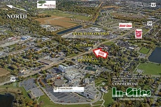 33 miles SE of Chicago. Located on the north side of Joliet (aka US 30). 2 blocks east of the Illinois Border, 4 miles east of I-394, 9 miles S of I90/94. Amtrack South Shore Commuter rail is 1 mile north. Close proximity to Dyer Town Hall, Franciscan Hospital, Auto Auction, White Rhino, Subway, Texas Roadhouse, Jewel/Osco Shopping anchored shopping center, Starbuck's, Chipotle, Chili's and McDonald's, Gino’s Steakhouse among many other restaurants, banks, Walgreen’s and stores. Excellent visibility along U.S. Highway 30 with a 2025 traffic count of 31,634 cars daily