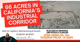 Positioned within the rapidly expanding California Desert Industrial Corridor, 27500 Sierra del Sol presents a rare opportunity to acquire a large scale industrial landholding with substantial infrastructure and income already in place. The property spans approximately 66 acres and is situated just three miles from Interstate 10, providing efficient connectivity to key logistics routes that serve regional distribution, trucking operations, and industrial users throughout the Coachella Valley and beyond.