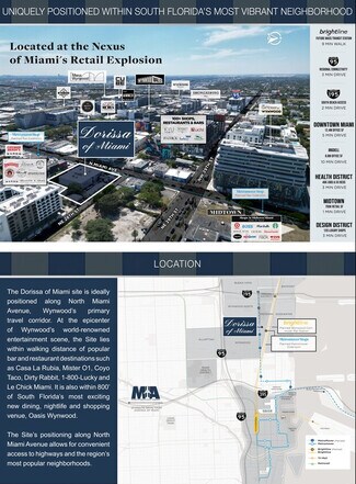 Situated in between Wynwood and Midtowne Miami. High Exposure off Miami Ave. perfect Location for Retail or Office
