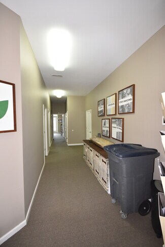 Side B was built out for an oral surgeon originally, and although two of the private spaces have been combined, it can be put back to three private offices or examine rooms. The plumbing is in the walls for hand sinks. The first floor also has a generous reception and waiting area, two handicap accessible bathrooms, a kitchenette and file/storage area. The second floor has a large open space, bathroom, kitchen and private office with walk-in closet. The private office had a bathroom that could easily be put back in place.