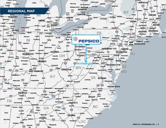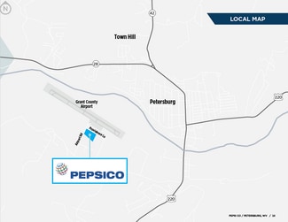Cushman & Wakefield, Inc. and Century Realty, LLC are pleased to offer for sale a 950 SF industrial building in Petersburg, WV leased to Bottling Group, LLC, a subsidiary of PepsiCo, Inc.. The original 10 year lease to Bottling Group commenced April 1, 2024 and has an 8 year 3 month remaining lease term. Petersburg is located in the Potomac Highlands region which is in the eastern panhandle of West Virginia. The region’s economy has a diverse mix of defense research and manufacturing, wood products manufacturing, food production, and tourism.