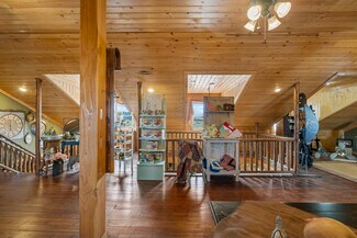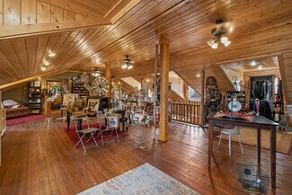 There is also an option to lease this property for $3,000 a month. The retail / office space is incredible, a fun log built cabin that is located in the General Commercial zoning. Incredible open space for retail, along with a prep room, and walk in refrigerator, upstairs is also features open space for retail . Interior finishes consists of wood, RFP, and carpet flooring, log pole and and gypsum board walls, along with tongue & groove and gypsum board ceiling. The main level has a clear height of 9 feet withe the upper level ceiling is pitched with a clear height ranging from 5ft to 8.5 ft. Basement has an office that has been rented out to a tenant in the past.
