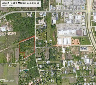 The total available acreage is approximately 25.38 acres includes a 14.45 acre tract at the intersection of Calvert Road and Medical Complex, 5.647 acre tract located on the southwest corner of Calvert Road and a County Road, and an adjacent 5.279 acre tract are are available. These tracts maybe purchased individually or in conjunction with the others. The City limits of Tomball are located across Calvert Road and public water and sewer service are located nearby. The properties are located near the Intersection of SH 249 and FM 2920, in a heavily developed regional retail area. Great for commercial, light industrial, medium density residential or mixed-use development.