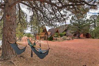 This unique 7000+ square foot, triple A-frame cabin on 9+ acres at an altitude of 7,400 feet, with mature pines and a large meadow, is