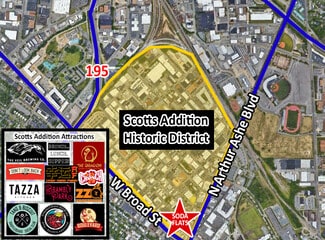 The property provides on-site parking—a rare amenity in this bustling neighborhood—along with modern finishes that complement the creative energy of Scott’s Addition. Tenants will benefit from immediate access to major thoroughfares, including I-95 and I-64, and proximity to downtown Richmond, making it convenient for employees and customers alike. This location is perfect for businesses looking to capitalize on high foot traffic and the area’s growing residential base.