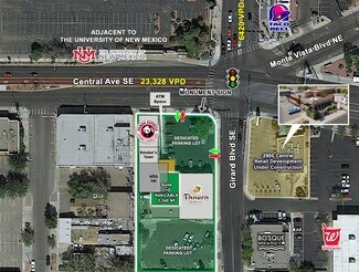 This recently renovated center is located along Central Ave (Rt 66) across from the University of New Mexico and at the entrance to Albuquerque's Nob Hill submarket. Both of these submarkets are known for their high density of rooftops as well as high daytime population. The center is 5 minutes to the nearest interstate exits and major regional hospitals, as well as 7 minutes from the Albuquerque Sunport.