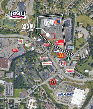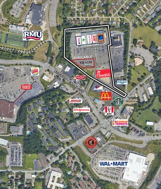 Chick-fil-A now open! One outparcel remaining - pad ready site adjacent to Chick-fil-A. Adjacent to Robert Morris University and minutes to Pittsburgh International Airport. Easy access to I-279 and I-79, or downtown Pittsburgh. Across from Walmart Supercenter. Near McDonald's, KFC, Starbucks & more.
