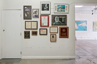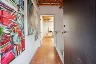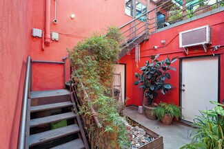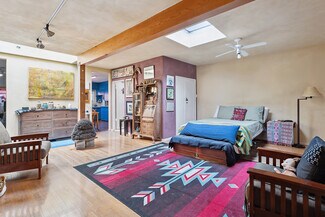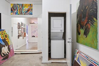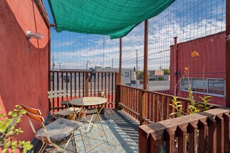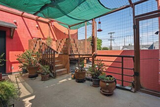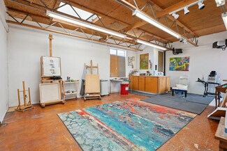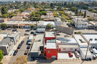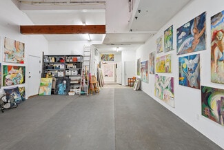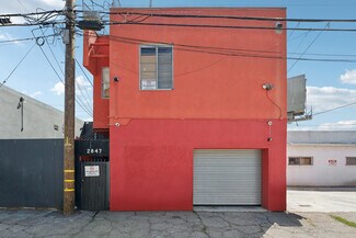 Welcome to 2847 Robertson, a truly unique opportunity to own a piece of Los Angeles history. This storied address was once the working studio and home of the legendary Rachel Rosenthal, one of the most influential interdisciplinary artists, performers, and teachers of the 20th century. The front half of the property is smartly partitioned into two distinct rooms, making it well-suited for two separate businesses or creative ventures. Behind this, there is a performance studio with 220-amp power and dramatic double-height ceilings. This studio space can easily function as a garage, accommodating up to four vehicles. Upstairs, there is a spacious studio apartment, a large patio, and an additional studio space. The studio apartment upstairs features a full kitchen, living room, and bathroom with incredible tree-top views. The additional studio offers exceptional natural light and could potentially be transformed into an additional residential unit. Recent improvements include brand new lighting and windows throughout, new roofs and a deck (2025), and major system updates: upgraded electrical panels (2023 & 2024), and new HVAC. Rarely does a live-work residence combine such versatility and historic provenance.