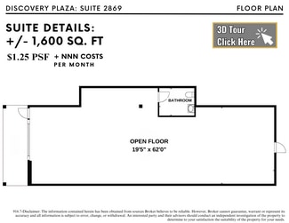 Competitive rate of $1.25 PSF per month, plus NNN costs.