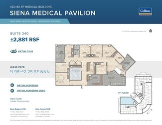 Siena Medical Pavilion is a market-best medical office campus providing unrivaled proximity to the Dignity St. Rose Siena Campus along with locational advantages. The Siena Medical Pavilion campus includes one single story building along with (two)three-story elevator building totaling 139,222 square feet of prime medical office space.