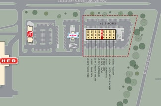Parkway Commons is an HEB shadow anchored shopping center at one of the premier retail intersections in League City. Located in the SEQ of Texas 96 and South Shore Road, Parkway Commons is situated near national tenants such as HEB, Kroger, Chick-fil-A, and Chase Bank, as well as a strong residential population.