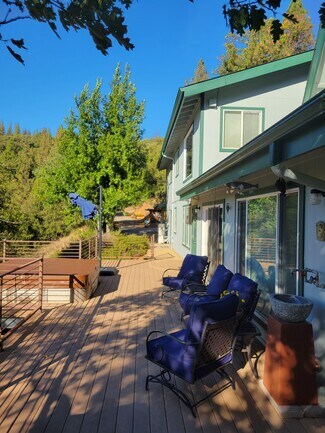 The secluded main residence includes a 3,400 ft2, 4 bedroom, 4 bath home with attached 4 car garage located on the lower parcel that overlooks the South Fork Mokelumne River with unparalleled canyon views. The main house can be used as a personal residence, or managed as a vacation rental for additional income. The ranch includes over 1/3 of a mile of private access to both sides of the South Fork of the Mokelumne River, a private wild trout and gold-bearing stream. Downstream and on both sides of the river are 900 contiguous acres of government land in permanent open space. The lower property has been managed as a  private wild trout stream and wildlife preserve for over 30 years.