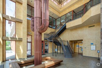 The southwestern design features of the building include copper capitals, hand hammered in Mexico, to highlight cement columns, oversized flower boxes and features a 23foot cactus sculpture in the 1,000sf glass atrium. The roof was recently replaced. Contact owner/manager Lucca Realty Group- Michelle Lucca for more information. With a prime location at the corner of Fire Road and the Black Horse Pike, this 38,000sf Class A Office building has cornered the eyes of many passing motorists. It features an unusual landscaping design complete with 16 solid granite balls, dancing fountains and waterfall.