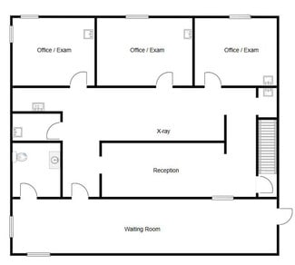 • Three exam rooms, X-ray, and sterilization areas