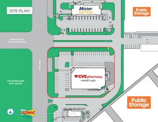 The CVS property is strategically located in a new construction retail development on the high traffic corridor of FM 2978 (31,295 VPD) at the western entrance of The Woodlands – an extremely affluent and dynamic mixed-use residential and commercial master planned community with average household income of $183,000. Other tenants in the center include AutoZone, Sonic, Mister Car Wash, Public Storage, and a two acre parcel currently in negotiations with a future automotive user and a proposed QSR tenant. The Woodlands is home to corporate headquarters, golf courses, high-income residential neighborhoods, top-ranked schools and more than 2,600 companies including Howard Hughes, Huntsman Corporation, Oxy, Chevron Phillips Chemical Company, McKesson, and Waste Connections US, Inc., to name a few. FM 2978 runs along the western edge of the Woodlands and intersects FM 1488 to the north, and to south it connects with State Highway 99 (The Grand Parkway) that circumnavigates the Houston MSA. Nearby retail tenants along FM 2978 include Walmart Supercenter, Starbucks, Subway, Whataburger, Chase Bank, Wells Fargo, and other national tenants. Surrounding demographics are outstanding with average household income over $190,900 and population over 112,300 within 5 miles.