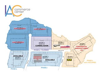 IAC Commerce Center is a one million square foot brand new industrial development in the North Los Angeles region consisting of seven state-of-the-art buildings on 116 acres. The buildings range in size from 93,735 SF to 216,320 SF. Phase 1 and Phase 2 are complete with multiple properties leased. Walls are tilted for Phase III - a 113,400 SF Class A industrial facility.