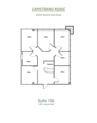 Surrounded by lush landscaping, including beautiful center atriums with waterfalls, Capistrano Ridge Business Park has superior freeway and toll road accessibility and visibility. We are in close proximity to numerous nearby restaurants and major retail centers including The Shops at Mission Viejo, Kaleidoscope and historic down town San Juan Capistrano. On-site amenities and services include but not limited to, electronically-controlled building access, high-speed broadband fiber capability, independently controlled HVAC systems, separately metered suites for electricity, a state of the art fitness center and common area conference room.