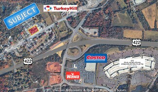 High Visibility, Mixed-Use Commercial property located along busy High Street/Ridge Pike (with over 16,000 cars per day) and just off the Sanatoga exit of Route 422. This 2 +/- acre level and rectangular tract offers over 300 feet of frontage and includes a 4000 square foot retail building, stately farmhouse converted into 4 residential units, an historic 1750 SF bank barn, and 1300 SF heated pole building. Attractive Gateway Interchange Zoning offers a wide range of potential uses including retail, professional and financial office, automotive sales and service, restaurant including drive through and fast food, barbershop/salon, day care/preschool, pet service/veterinary, and many other potential applications. The present day 40x100 free-span commercial building has served as a popular antique store for over a century. The current retail space lease ends in 2026. The original farmhouse, situated on the very southeastern corner of the property, was converted in the 1990s into 4 one-bedroom apartments, each with separate heat, electric, and central air utility services. The apartments are fully occupied. The heated 1300 SF pole barn/workshop with two overhead garage doors, and the vintage 1600 SF red bank barn with brownstone foundation represent potential additional income generating sources. Whether you utilize the existing array of buildings for your business venture or construct a new structure on the property, the high visibility location combined with exceptional convenience to Route 422 create an ideal environment for growth.