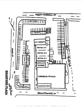 BRADFORD PLAZA is situated in busy Bradford Square at the intersection of Rt 125 (So. Main Street) and Ferry Street. Adjoining neighbors including Walgreens, McDonalds, Wendy's, Donuts, USPS and various support and local food shops, variety, service and office. On City bus Service and easily walkable to downtown and River Walkway. Available space includes approx 2,000' of 1st floor located as E-3