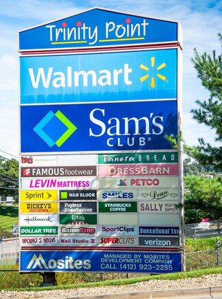 Well established 450,000 SF Power Center anchored by Walmart and Sam's Club. Tenancy includes national restaurants, brands and regional banking. Located at the junction of I-79, I-70 and Route 19.