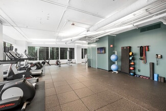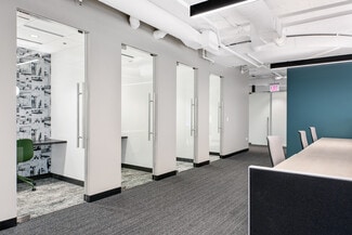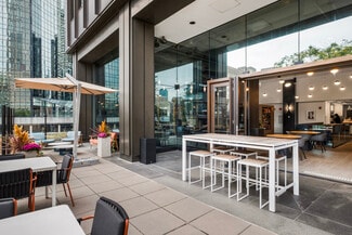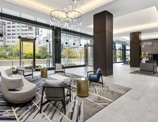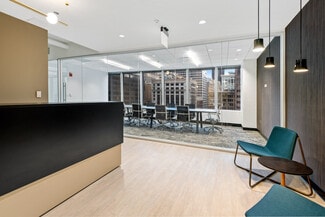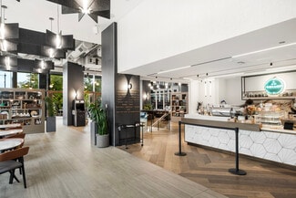 The building offers a robust amenity package, including a fitness center with a yoga studio, a tenant lounge, and on-site food service, creating an elevated workplace experience. Exclusive parking and a dedicated bike room cater to diverse commuting preferences, while proximity to major transportation hubs ensures easy access for employees and clients alike.