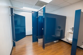 The building features two multi-stall restrooms, a finished employee breakroom, and additional upstairs storage space, allowing businesses to maximize operational efficiency. The property also includes ample on-site parking, an important feature for customer accessibility and employee convenience.