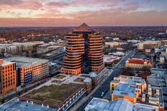 Durham Centre is being transformed into a dynamic, next-generation workplace designed to foster collaboration, creativity, and employee well-being. This reimagined Class A, 15-story office tower features a reflective, stepped-pyramid roof and a striking three-story atrium overlooking Downtown Durham. It will offer exceptional design, premier amenities, and unique outdoor spaces that connect seamlessly to the city’s urban landscape. Amenities the building offers Indoor pickleball court A 15th-floor Sky Bar + social lounge with panoramic skyline views Trackman golf simulator A reconfigurable 60-person conference and training room A locally curated coffee café and corporate event venue Multiple Wi-Fi enabled open-air workspaces overlooking Downtown Durham A glass solarium and quiet retreat lounge with biophilic design Fitness and wellness facility with yoga, infrared saunas, and cold plunges Library, game room, and collaborative social areas An AI-powered creative lab and collaboration space