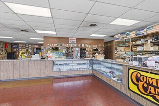 This single-story commercial property offers a versatile opportunity for owner-users or investors seeking a well-maintained building in a high-visibility corridor. Built in 1978 with durable concrete block construction, the property features approximately 6,300 square feet of functional space, including over 4,200 square feet of heated open shop area with 11-foot ceilings, floor drains, and water access. The west end includes a 10’x10’ overhead door for convenient ground-level loading, while the front section provides roughly 2,000 square feet of office or retail space with a full glass storefront.