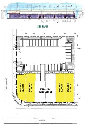 Situated next to the 17th St I-5 freeway exit, this high visibility retail center is located at a signalized corner. 20' pylon signage available. Center is yards for the 17th & Main St. intersection with 90,000 CDP. NWC 17th & Spurgeon Ave