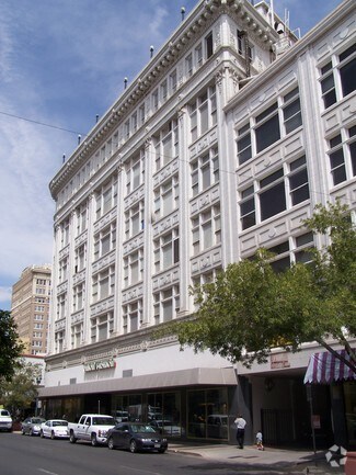 The ground-floor retail spaces are designed with flexible storefronts and prominent street presence, allowing operators to tailor their space while benefiting from one of Downtown El Paso’s most visible and active locations.