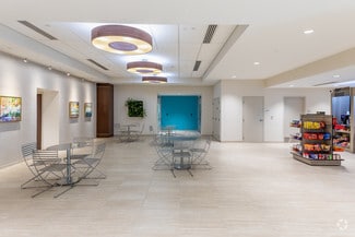 • Onsite amenities include a gym with locker rooms and staffed security services.