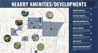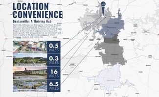 access to a covered parking area. The unit comes with three reserved covered parking spaces, along with ample public and street parking for customers and guests. Offered at $32.00/SF, the property is move-in ready and available with a market-rate five-year lease. Tenants will benefit from exceptional walkability and bikeability, with nearby restaurants, bars, coffee shops, and retail, as well as direct access to the NWA Greenway Trail system. With more than 2,000 homes within a half-mile radius and growing, this location presents an outstanding opportunity for office, retail, or service-oriented users seeking a strategic presence in one of Northwest Arkansas’s most dynamic markets.