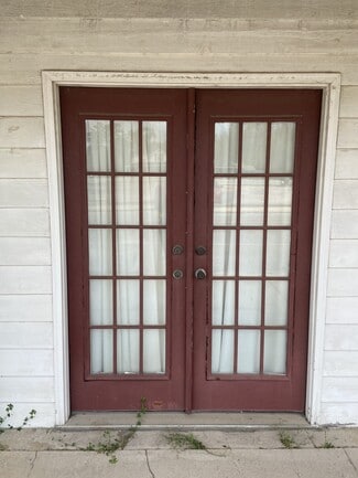 Rear alleyway access with a large exterior double door — ideal for deliveries, equipment, and secondary entry