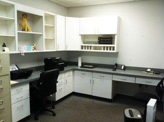 Private offices, large reception & waiting area, multiple examination rooms, operating room, kennel, medicine and equipment storage.