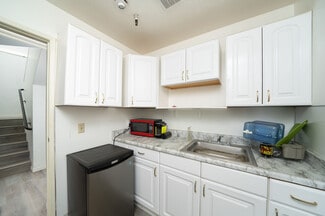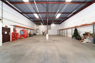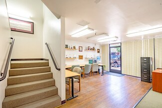 Ideal Office and Warehouse gated combo in the heart of Santa Ana. DOUBLE UNITS (Units G&H) connected inside. Enter into a modern front office with a spacious warehouse in the back. There are 2 lift metal gates. Upstairs have a large office and two private offices. Perfect for housing employees and management. Downstairs has a kitchen and secondary space with storage room convertible to another office, break room, or storage. There are 2 bathrooms and 2:1 parking space ratio