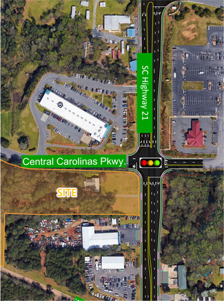 • High Visibility on Highway 21 at Central Carolinas Parkway with approved Pennies For Progress Road Improvements to 5 lanes to begin January 2026, and completed 2028 (add attached aerial)