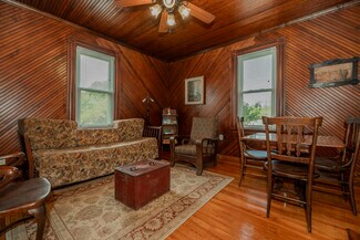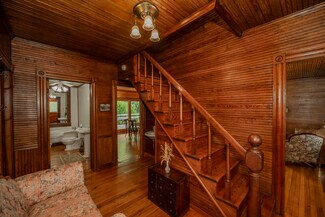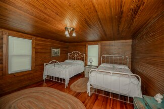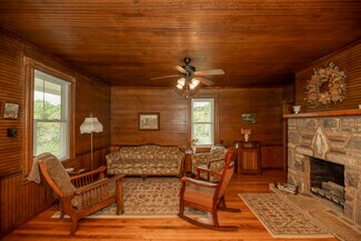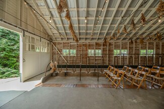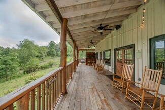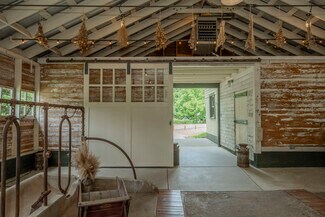 This beautifully kept historic farm features a 1910 farmhouse and a large event barn for hosting gatherings or your creative passion. The farmhouse has been carefully restored to retain the charm of turn-of-the-century farm life, with a porch overlooking the valley. Beadboard paneling, wood ceilings, original fireplaces, and vintage hardwood flooring lend a lived-in atmosphere of an old family home. The event barn features over 3,300 feet of finished space upstairs, including expansive bathrooms and a catering kitchen; downstairs is an office, a commercial kitchen, storage, and open barn space which could be converted for livestock use. A smaller event barn and various outbuildings are scattered among stands of old hardwood trees, with oak-lined paths and a small pond completing the package of mountain living. Fully fenced pastures are suitable for livestock or recreation. This simply beautiful and immaculately-kept property is ready for a new legacy of generational ownership, all peacefully and privately serene yet less than 20 minutes from downtown Asheville. Furnishings available.