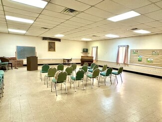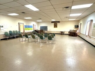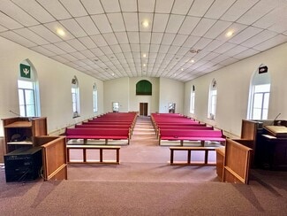 The former Ebenezer United Methodist Church offers a sanctuary, hall, kitchen, restroom, mechanical room, and storage. The sanctuary has a modern-style interior with a large altar area, pew seating, and an upper-level viewing deck. The hall includes a play area that can be closed off with accordian walls. The warming kitchen has non-commercial appliances, and could benefit from updates. There is only one restroom. The condition of the boilers is unknown, but the HVAC for the hall was in working condition in July. The sanctuary is cooled with window units. The property is zoned 22R-1 (one family residential), and supports very few commercial uses. While the property is turnkey, some updates and repairs should be expected.